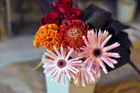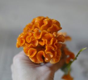 ケイトウです。 秋になるといろんな色が出回ります。 暖かみのある花材です。 |