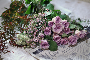 花材 バラ ワックスフラワー アストランティア ユキヤナギ レモンリーフ ハートカズラ |