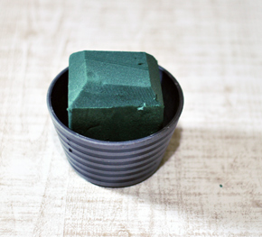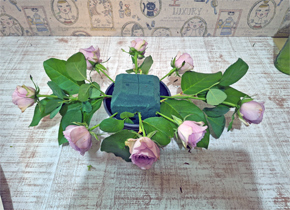 高さを決める花を中心に入れましょう テーブルフラワーなので低めにいれます 高さは17~20㎝くらいです