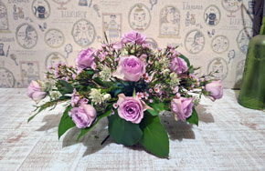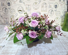 秋の色合いで定番テーブルフラワーをつくります。テーブルの中心に飾ることを考えて高さを出さないようにアレンジします。今回は少し横長のスタイルで、ナチュラルアレンジを完成させましょう。 |